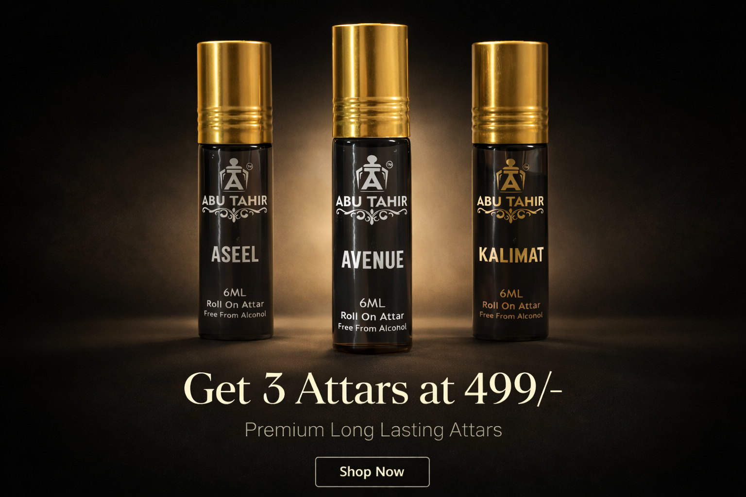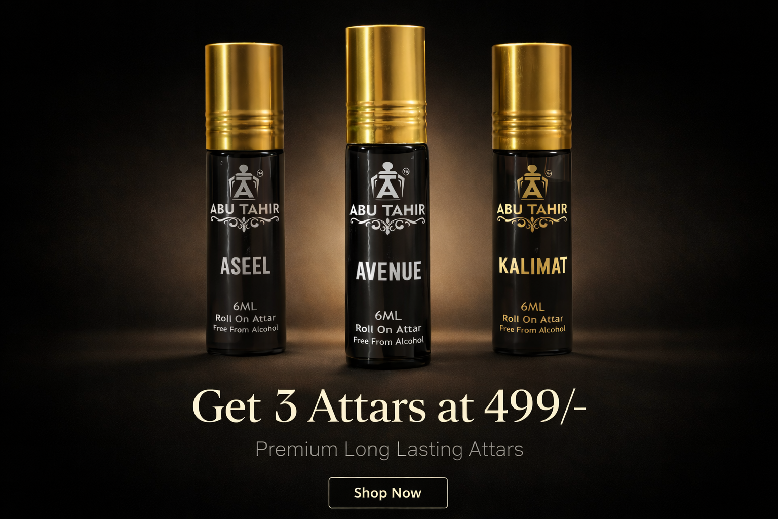 Abu Tahir Premium Attar Combo Pack - Fresh to Deep Journey | AVENUE, ASEEL & KALIMAT | 3x6ml Alcohol-Free